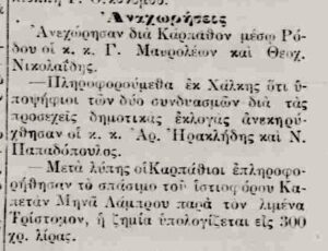 Στην εφημερίδα «Δωδεκανησιακή Αυγή» καταγράφονται οι κινήσεις ιστιοφόρων και των επιβατών (ονομαστικά!) από και προς την Κάσο και την Κάρπαθο (1920-1945).