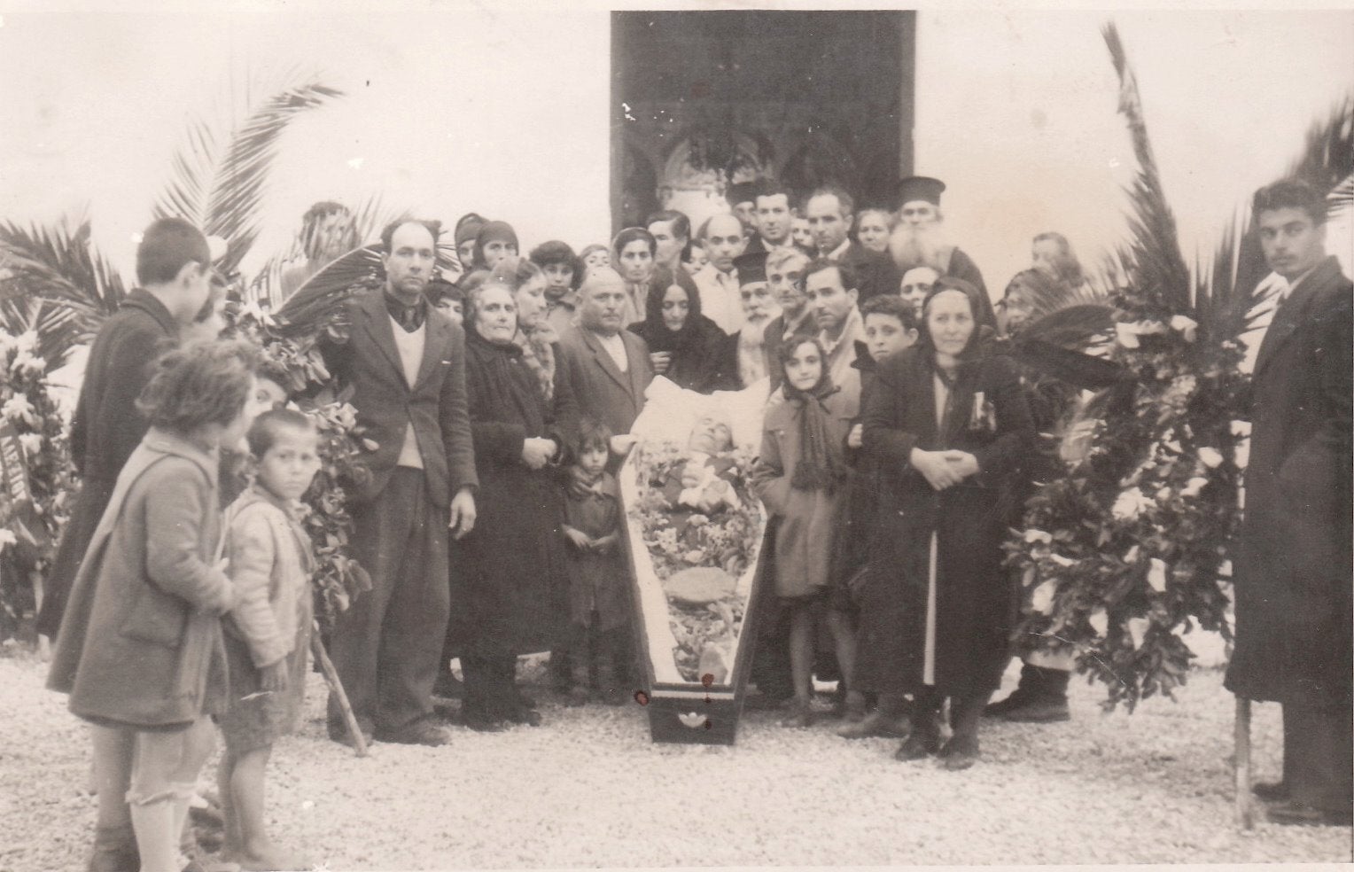 Στιγμιότυπο από την κηδεία του Νικόλα Λάμπρου, δεύτερου γιοy του Κωνσταντάκη, το 1950 στη Ρόδο