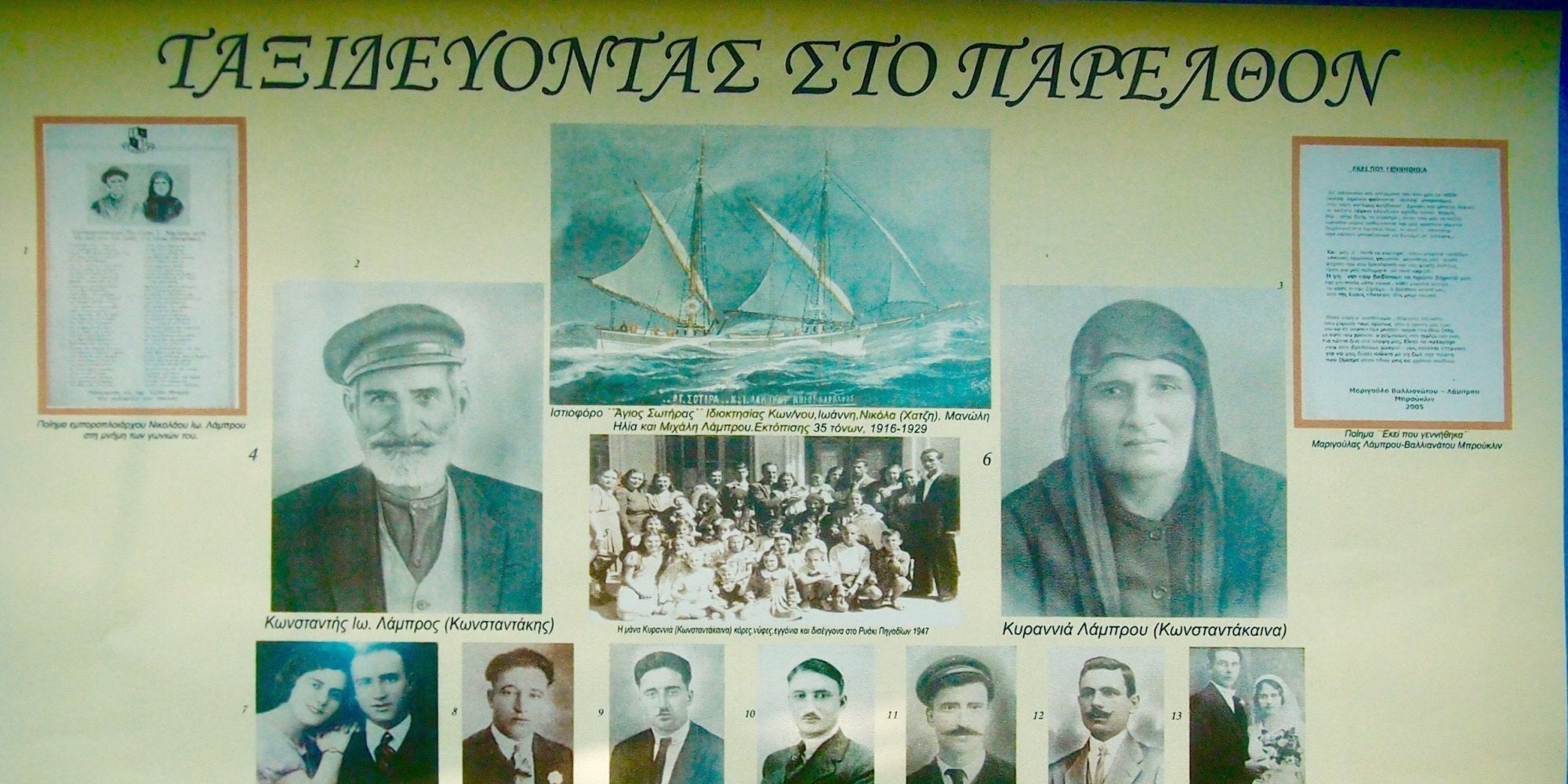 Αφήγηση Γιάννη Λάμπρου (γεννημένος του Αγίου Δημητρίου το 1922. Γιος του Νικόλα Λάμπρου, εγγονός του καπετάν Κωνσταντάκη, τέταρτη γενιά των Λάμπρων, κι αυτός ναυτικός).