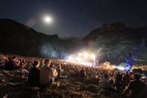 Εκεί ανάμεσα στις λαξευτές κατοικίες, τις δεξαμενές και τους δρόμους του αρχαίου οικισμού οι επισκέπτες κάθονται και προετοιμάζονται για την έναρξη της συναυλίας. Σήμερα έχει προγραμματιστεί παράσταση της Αθηναϊκής Συμφωνικής Ορχήστρας Νέων. Κάποιοι πιο προετοιμασμένοι φτάνουν εδώ με πτυσσόμενες καρέκλες και μαξιλάρια. Ο χώρος γεμίζει. Η πλαγιά φιλοξενεί περίπου 5000 άτομα. Όπως και να είναι, η υπό έκλειψη πανσέληνος κάνει την εμφάνισή της και η παράσταση ξεκινάει. Η αλήθεια είναι ότι στο μυαλό μου, έχει ξεκινήσει πολύ πριν.