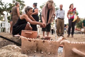 Ξεκινώντας προς τον αρχαιολογικό χώρο, μας κερνάνε ένα πεντανόστιμο ξηροτήγανο το οποίο παρασκευάζεται από επιχείρηση που δραστηριοποιείται στο χωριό. Φτάνοντας στο χώρο της εκδήλωσης εντύπωση προκαλεί η τεράστια κατασκευή της εξέδρας. Ανηφορίζω και αρχίζω να καταλαβαίνω ότι αυτό που θα ζήσουμε θα είναι μοναδικό.