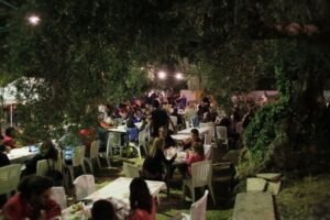 Φτάνοντας στο μικρό χωρίο καταλαβαίνεις ότι είναι έτοιμο να υποδεχτεί αρκετό κόσμο. Αυτοσχέδια parking ανάμεσα στις ελιές, με άρτια οργάνωση. Άνθρωποι του χωριού, μόνιμοι κάτοικοι ή άλλοι με καταγωγή από εκεί, όλοι εθελοντές ασχολούνται ακόμη και με την τελευταία λεπτομέρεια. Κάθε αυλή είναι περιποιημένη, ολάνθιστη και ανοιχτή. Στα πρόσωπα των ανθρώπων βλέπεις τη χαρά και ταυτόχρονα την αγωνία ώστε όλα να πάνε καλά. Είναι η τελευταία ημέρα των εορτών που ξεκίνησαν πριν από 20 ημέρες και περιελάμβαναν μουσικές εκδηλώσεις, εργαστήρια, θέατρο, δράσεις για παιδιά, ξεναγήσεις.