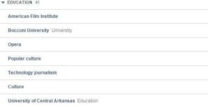 Τώρα βέβαια πώς εμένα βέβαια πώς κάτω από την κατηγορία «Μόρφωση», μου βγαίνουν επιλογές όπως «American Film Institute» και «University of Central Arkansas», με κάνει απλώς απορώ( το «Όπερα» δεν θα το σχολιάσω καν). Το ότι όμως στο «Χόμπι και δραστηριότητες» μου βγαίνουν τα «ψάρι», «οδοντικό νήμα» και «εκτροφή σκύλων» με κάνει να ανησυχώ. Μα τι στο καλό έχω κάνει στο Facebook;