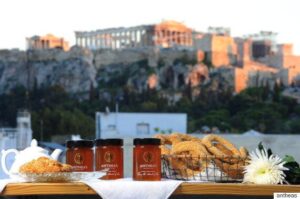 Ξεκινήσαμε με τα φραγκόσυκα και στη συνέχεια ακολούθησαν και τα υπόλοιπα προϊόντα μας. Τα κτήματα που επιλέξαμε έτυχε να έχουμε μέσα αμυγδαλιές, και συγκεκριμένα αμυγδαλιές με αυτήν την παλιά ελληνική ποικιλία με το μικρό αμύγδαλο. Τα δέντρα μας δεν τα ποτίζουμε, ούτε τα ραντίζουμε. Ποτίζονται από τις βροχές, με αποτέλεσμα να βγάζουν αυτό το πολύ μικρό, αρωματικό αμύγδαλο. Επίσης, οι λόφοι μας ήταν γεμάτοι θρούμπια, ρίγανη, θυμάρι, φασκόμηλο, οπότε πιστοποιήσαμε και όλα τα βότανα και από του χρόνου θα μπορούμε να διαθέτουμε και βότανα, όχι βέβαια σε μεγάλες ποσότητες γιατί θέλουμε να τα κρατήσουμε όπως τα βγάζει η φύση και να μην παρέμβουμε. Τα μελίσσια ήρθαν ως μία φυσική εξέλιξη. Η Τζια είναι ο παράδεισος της μέλισσας. Δεν γίνονται ψεκασμοί, δεν χρησιμοποιούνται λιπάσματα και η μέλισσα τρέφεται με ό,τι βγάζει η ελληνική γη. Όταν ξεκινήσαμε να φτιάχνουμε μέλι για δική μας κατανάλωση εντυπωσιαστήκαμε τόσο πολύ με το αποτέλεσμα και με τα φοβερά προϊόντα της μέλισσας, όπως ο βασιλικός πολτός, η πρόπολη και η γύρη και αρχίσαμε να το ψάχνουμε λίγο παραπάνω. Συνεργαστήκαμε με πολύ έμπειρους μελισσοκόμους. Το μέλι είναι ένα από τα προϊόντα που είναι υπό εξαφάνιση γιατί, δυστυχώς, τα μελίσσια μειώνονται, υπάρχει νοθεία και αλλοίωση της ποιότητας.