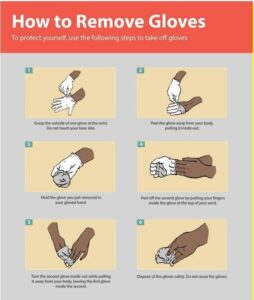 Η σωστή αφαίρεση των γαντιών γίνεται με την αναστροφή τους, ή αλλιώς την μέθοδο μέσα-έξω και αυτό είναι σχεδόν απίθανο να συμβεί χωρίς να μολυνθούν.