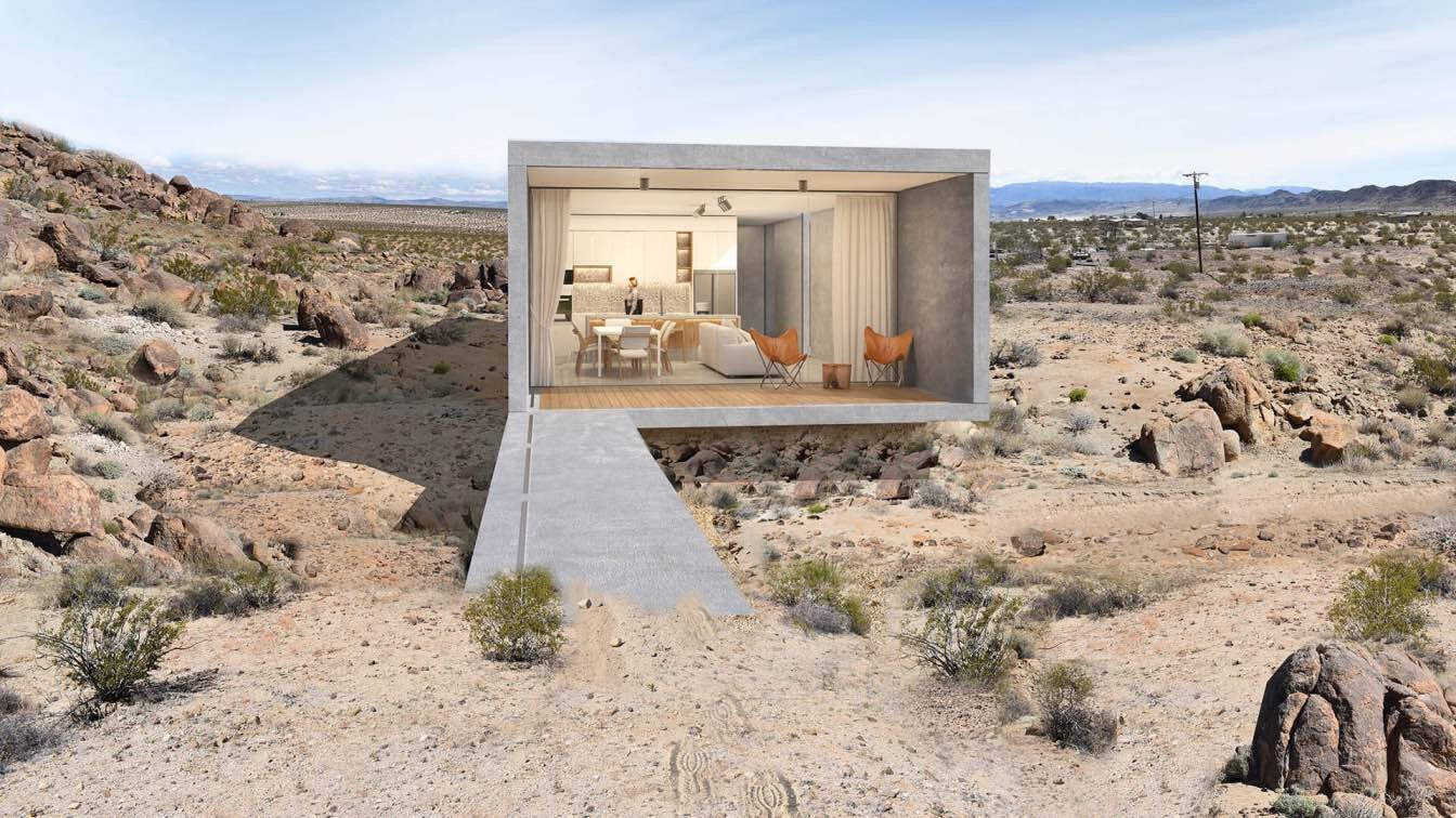 Το μίνιμαλ σπίτι είναι χτισμένο ανάμεσα στους βράχους, σε απομονωμένο σημείο της ερήμου Μοχάβι, στην Καλιφόρνια των ΗΠΑ και βρίσκεται σε άμεση επαφή με το φυσκό περιβάλλον.