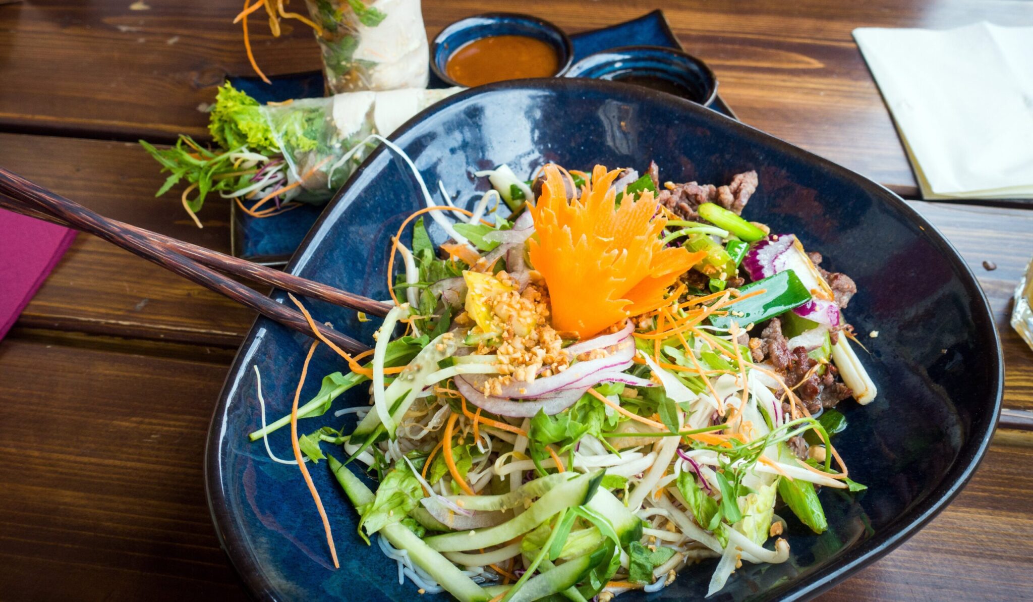 Κρύα βιετναμέζικη σαλάτα με νουντλς, κοτόπουλο και λαχανικά
