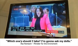 Κατά τη διάρκεια μιας συνάντησης της σουηδικής βουλής τις προάλλες, ένας εγχώριος τηλεοπτικός σταθμός έβαλε λάθος υπότιτλους στις ομιλίες των πολιτικών. Πόσο λάθος; Οι υπότιτλοι ανήκαν σε παιδική εκπομπή.