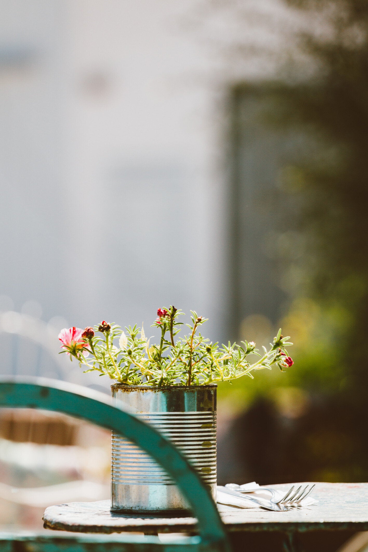 - Τα λουλούδια είναι καλοδεχούμενα – κάτι που άλλωστε ισχύει σε όλα τα στρωσίματα τραπεζιού είναι ότι πρέπει να έχουν και λουλούδια -, αρκεί να μοιάζουν σαν να κόπηκαν από κάποιον αγρό, όπως ανεμώνες ή μαργαρίτες. Τοποθετήστε τα μέσα σε απλά γυάλινα ποτήρια, κανάτες ή τενεκεδάκια. Τα μεγάλα και επίσημα βάζα δεν έχουν θέση εδώ.
