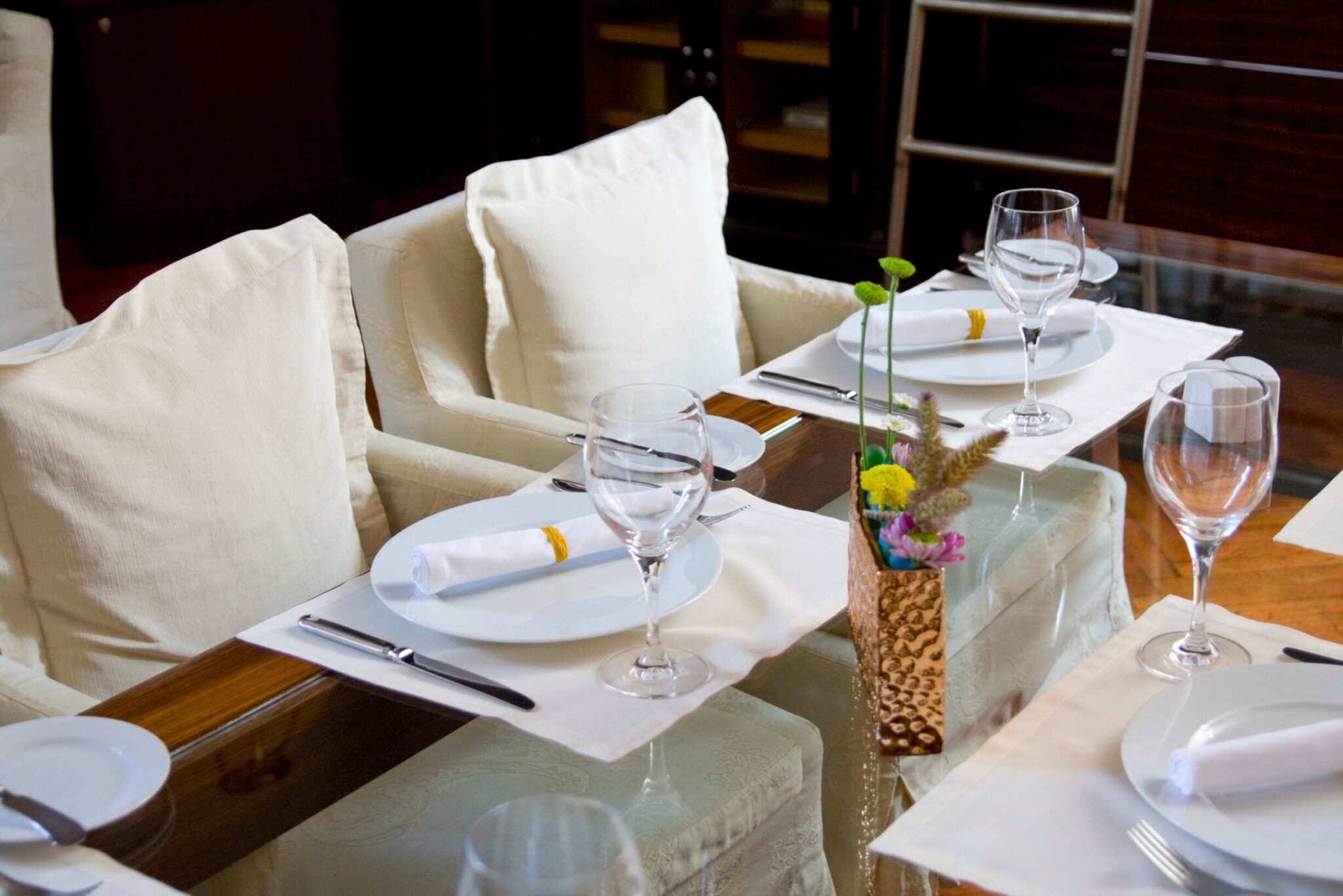- Επιβάλλεται κάθε καλεσμένος να έχει ξεχωριστό ποτήρι κρασιού και νερού, ξεχωριστό σετ μαχαιροπίρουνα για κάθε πιάτο και φυσικά διαφορετικά πιάτα ανάλογα με το ορεκτικό, το κυρίως και το γλυκό. Είπαμε, εδώ είναι πραγματικά που πρέπει να δώσετε όλη σας την ψυχή ως οικοδεσπότες!