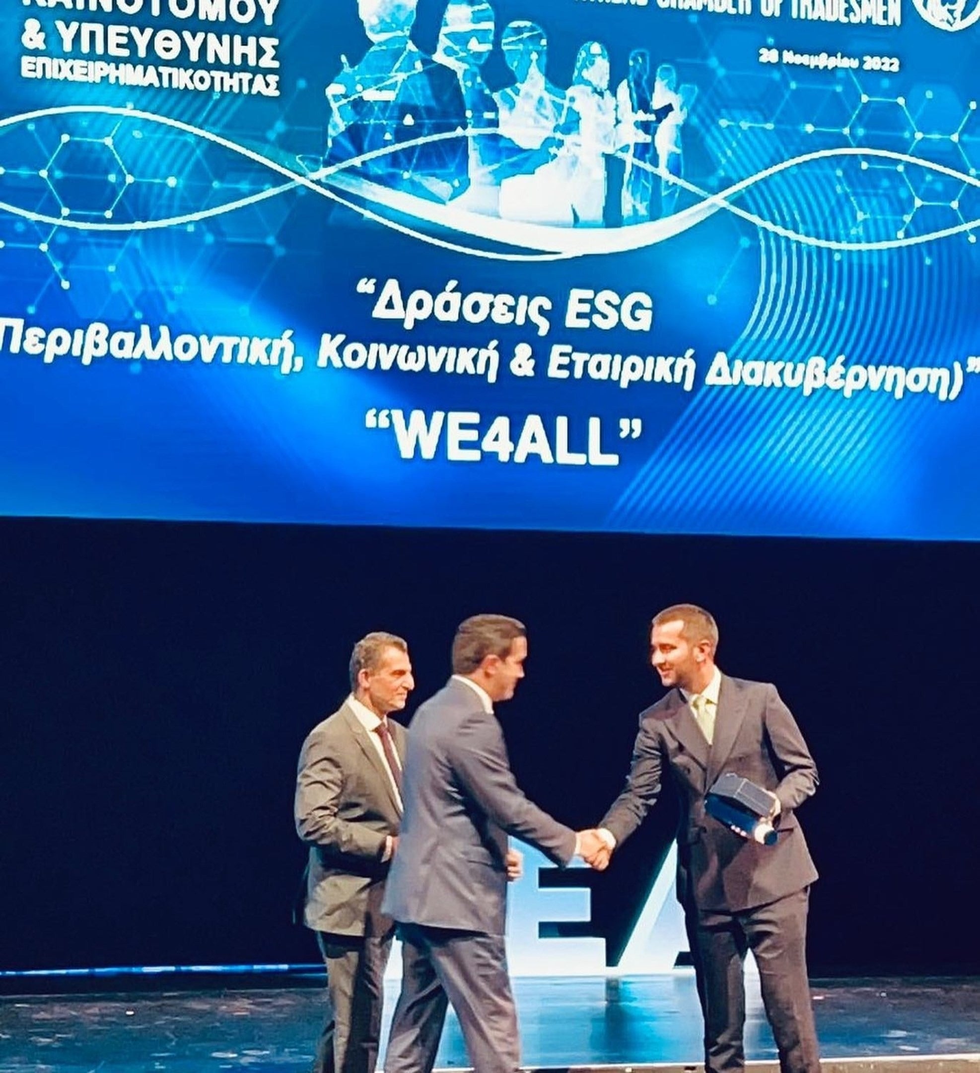 Η We4All έχει διακριθεί για το έργο της και σε εθνικό επίπεδο, έχοντας λάβει το βραβείο ESG 2022 από το Επαγγελματικό Επιμελητήριο Αθηνών, αναγνώριση που έρχεται να συμπληρώσει τις διεθνείς της διαπιστεύσεις.