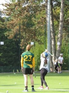 – Δε μπορείς να κρατάς την μπάλα στα χέρια σου καθόλου. Εάν θέλεις να τρέξεις με την μπάλα πρέπει αυτή να στέκεται πάνω στο μπαστούνι σου. Ωστόσο δεν μπορείς να τρέξεις με αυτή επάνω στο μπαστούνι για πάνω από 3 δευτερόλεπτα. Θα πρέπει να την πιάσεις και να την ξαναφήσεις ή να την χτυπήσεις στο πάτωμα και πάλι επάνω.