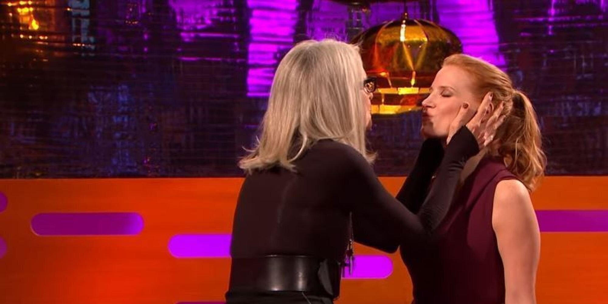 Φυσικά, το επόμενο λογικό βήμα αυτής της συζήτησης ήταν να σηκωθεί επάνω και να φιλήσει, τόσο τον παρουσιαστή της εκπομπής, όσο και το Kevin Bacon αλλά και την Jessica Chastein που ήταν επίσης καλεσμένοι.