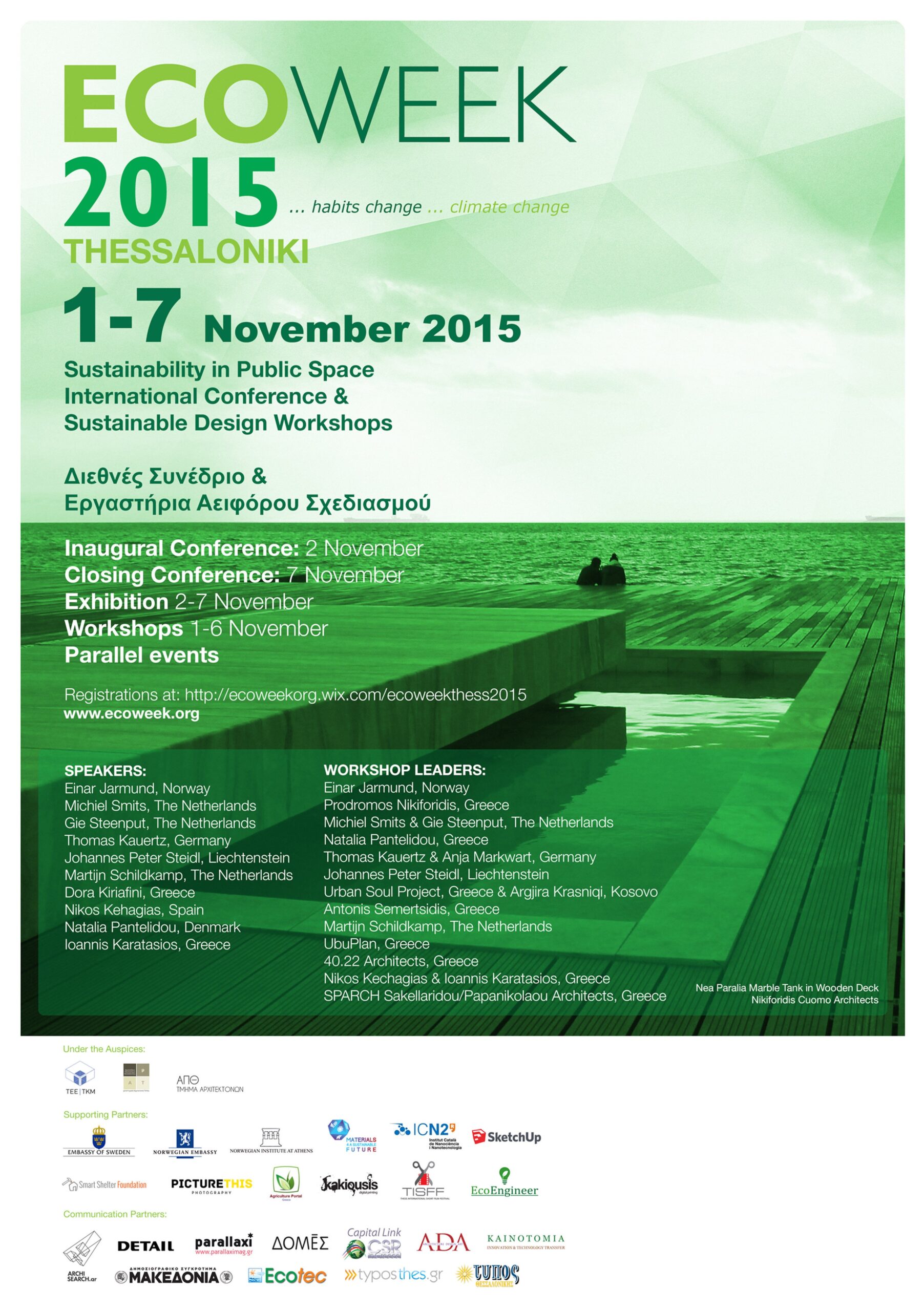 Η ECOWEEK επιστρέφει φέτος στη Θεσσαλονίκη με ένα Διεθνές Συνέδριο και εργαστήρια αειφόρου σχεδιασμού στις από την 1η έως και την 7η Νοεμβρίου 2015.