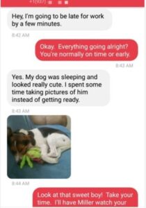 Η αργοπορία στη δουλειά συνήθως μας αφήνει ένα άσχημο συναίσθημα, ακόμα και όταν δεν πρόκειται για δικό μας φταίξιμο. Όταν ενημερώνουμε το αφεντικό ή τον αρμόδιο του τμήματος ανθρώπινου δυναμικού ότι θα καθυστερήσουμε, οι απαντήσεις συχνά είναι «ευχαριστώ που με ενημέρωσες» ή «μην ανησυχείς» αλλά όταν η Jenn έστειλε γραπτό μήνυμα στο αφεντικό της, λέγοντάς του το λόγο που θα καθυστερούσε 11 λεπτά, έλαβε την καλύτερη απάντηση.