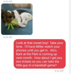 «Κοίτα αυτό το γλυκό αγόρι! Με την ησυχία σου, θα βάλω κάποιον συνάδερφο να σε καλύψει για λίγο. Τι θα έλεγες να έκλεινα εισητήρια για εσένα και τον σκύλο σου να δείτε αγώνα baseball;».