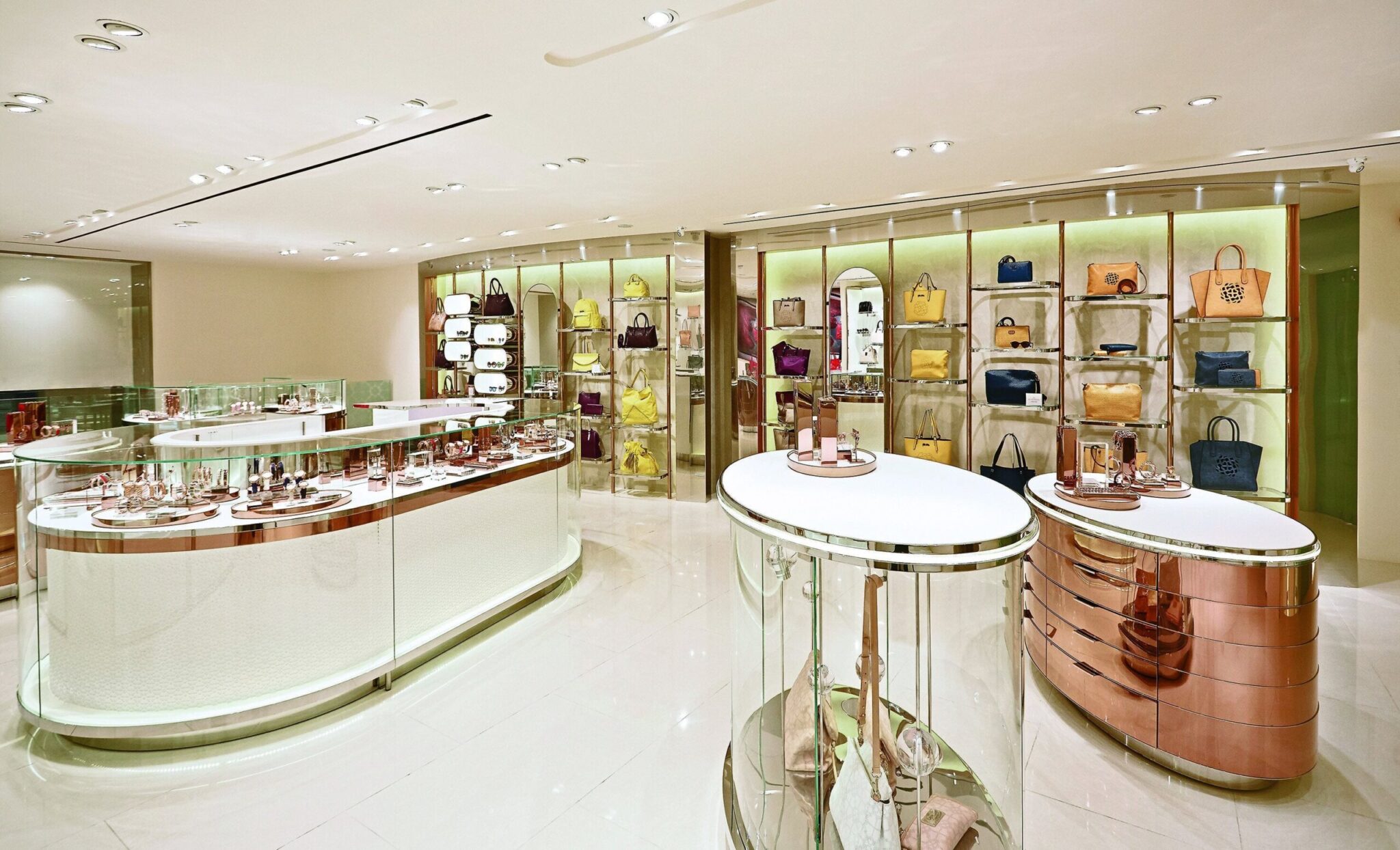 Με στόχο να προσφέρει μια μοναδική fashion εμπειρία, το Concept Store της Folli Follie διαθέτει μια κοσμοπολίτικη πινελιά στον σχεδιασμό του, που διαφαίνεται μέσα από statement γραφικά, μαρμάρινο δάπεδο, έπιπλα σε τόνους του ροζ χρυσού και του colonial white, καθρέφτες και διαφανείς επιφάνειες, που συνδυάζονται αρμονικά για να χαρίσουν ένα εντυπωσιακό αποτέλεσμα.