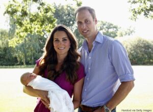 Ο Δούκας και η Δούκισσα του Κέιμπριτζ με τον νεογέννητο γιο τους, Πρίγκιπα George Alexander Louis του Κέιμπριτζ, στο Bucklebury τον Αύγουστο του 2013