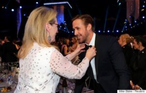 Ήταν η στιγμή που η Meryl Streep, που έχασε το βραβείο από την Emma Stone, έσκυψε να φιλήσει τον Ryan Gosling για να τον χαιρετήσει και του έφτιαξε το παπιγιόν που μάλλον είχε λίγο φύγει στο πλάι.