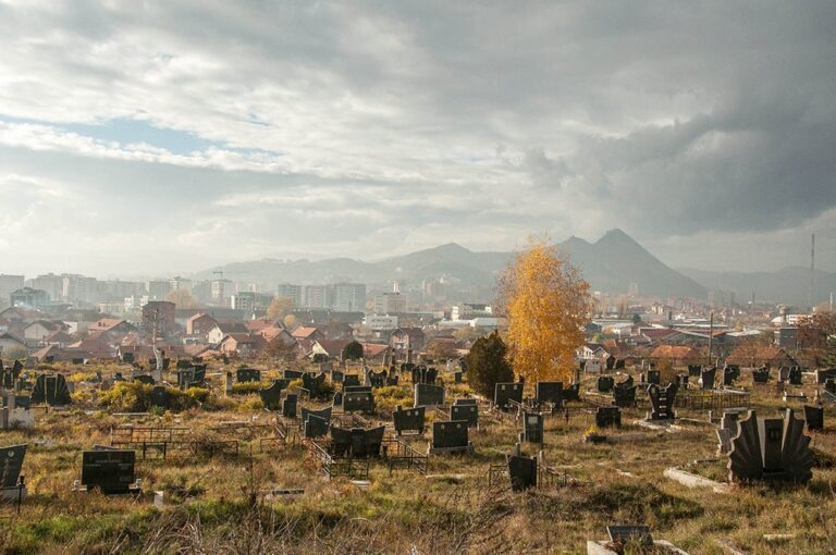 Ένα ιδιαίτερο μνημείο στέκεται στην κορυφή ενός λόφου στην πόλη της Μιτρόβιτσα, στο Κόσοβο. Δύο τεράστιοι κώνοι, φτιαγμένοι από μπετόν, συγκρατούν στη κορυφή τους μία καμπυλωτή τσιμεντένια κατασκευή, η οποία παραπέμπει σε καλάθι εξόρυξης μεταλλευμάτων. Είναι το μνημείο των μεταλλωρύχων της Μιτρόβιτσα, που φτιάχτηκε για να τιμήσει τους Σέρβους και Αλβανούς νεκρούς του Β’ Παγκοσμίου Πολέμου, οι οποίοι ζούσαν ειρηνικά και εργάζονταν μαζί ως μεταλλωρύχοι στην περιοχή. Λόγω του τεράστιου μεγέθους του, το μνημείο είναι ορατό σε όλη την πόλη. Από ψηλά το μόνο που αντικρίζεις είναι μια ενιαία πόλη όπου τα χαμηλά σπίτια διαδέχονται ψηλές πολυκατοικίες ενώ πέρα από αυτές ξεκινάει η πεδιάδα. Ωστόσο, κάτω από το λόφο, στο κέντρο της πόλης, η πραγματικότητα είναι διαφορετική. Το πάλαι ποτέ σοσιαλιστικό μνημείο των μεταλλωρύχων, σύμβολο της ενότητας των διαφορετικών εθνικοτήτων, στέκει ακόμα εκεί ψηλά να κοιτάει μια διχοτομημένη πόλη, τη Μιτρόβιτσα.