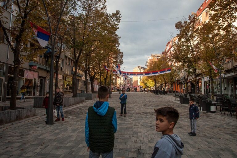 Περνώντας τη γέφυρα νόμιζα ότι βρισκόμουν σε άλλη χώρα. Από την υπό κατασκευή πλατεία, λίγο μετά τη γέφυρα, ξεκινάει ο κεντρικός πεζόδρομος της βόρειας πλευράς, ο οποίος είναι γεμάτος με σερβικές σημαίες. Μετά τον πόλεμο, και ενώ η ζωή των Σέρβων βρισκόταν σε κίνδυνο και πλήρως παραμελημένη από την κεντρική κυβέρνηση του Κοσόβου, δημιουργήθηκε η επαρχία του βόρειου Κοσόβου, η οποία απαρτίζεται κυρίως από Σέρβους. Έτσι, οι Σέρβοι που παρέμειναν στο Κόσοβο, με εξαίρεση κάποιους που ζουν σε εξαθλιωμένες συνθήκες σε εγκλωβισμένα χωριά εντός των αλβανόφωνων περιοχών, εγκαταστάθηκαν στη βόρεια Μιτρόβιτσα, την πρωτεύουσα της επαρχίας.