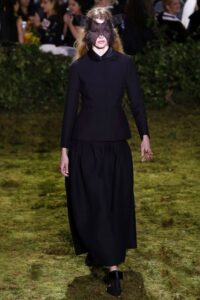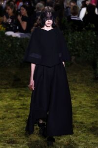 Οι ιταλικές επιρροές ήταν εμφανείς, αφού τα ολόμαυρα σύνολα με τα εντυπωσιακά αξεσουάρ στο πρόσωπο θύμισαν κάτι από Βενετία, αλλά οι γραμμές και η σιλουέτα των ρούχων ήταν μια καθαρή αναφορά στον Dior.