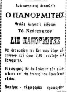 Οι Δωδεκανήσιοι που πάλευαν να φτάσουν στα νησιά τους, την δεκαετία του ’50 και ’60, σίγουρα θυμούνται το μικρό καραβάκι, που δεν άφηνε λιμάνι παραπονεμένο. Αυτός ήταν ο πρώτος Πανορμίτης, που ήρθε στη γραμμή μετά το πολύνεκρο ναυάγιο του πλοίου «Δωδεκάνησος».