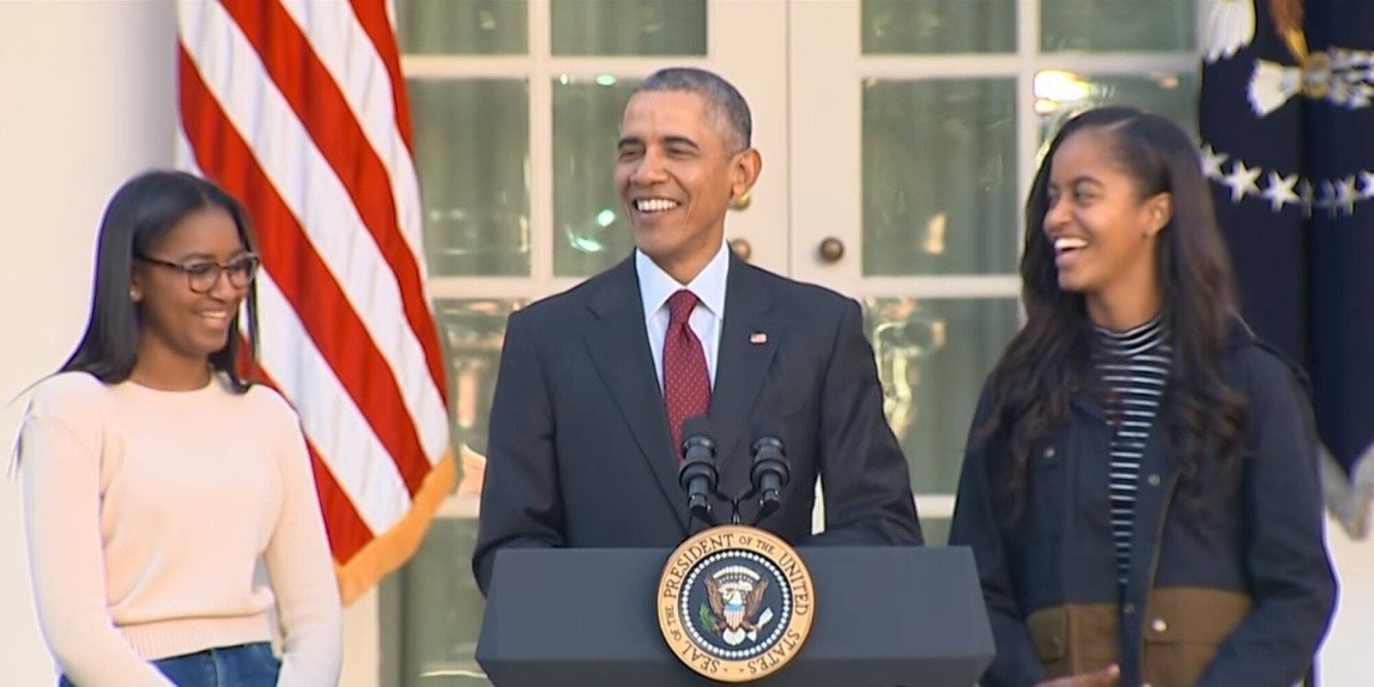 Η Sasha και η Malia Obama συνόδευσαν τον πατέρα τους στην καθιερωμένη τελετή της γαλοπούλας που πραγματοποιείται κάθε χρόνο τέτοια μέρα στον Λευκό Οίκο, όπου και γέλασαν αρκετές φορές με τα αστεία που έκανε ο πρόεδρος των ΗΠΑ σχετικά με τις γαλοπούλες. Ή τουλάχιστον, έτσι άφησαν να φανεί.