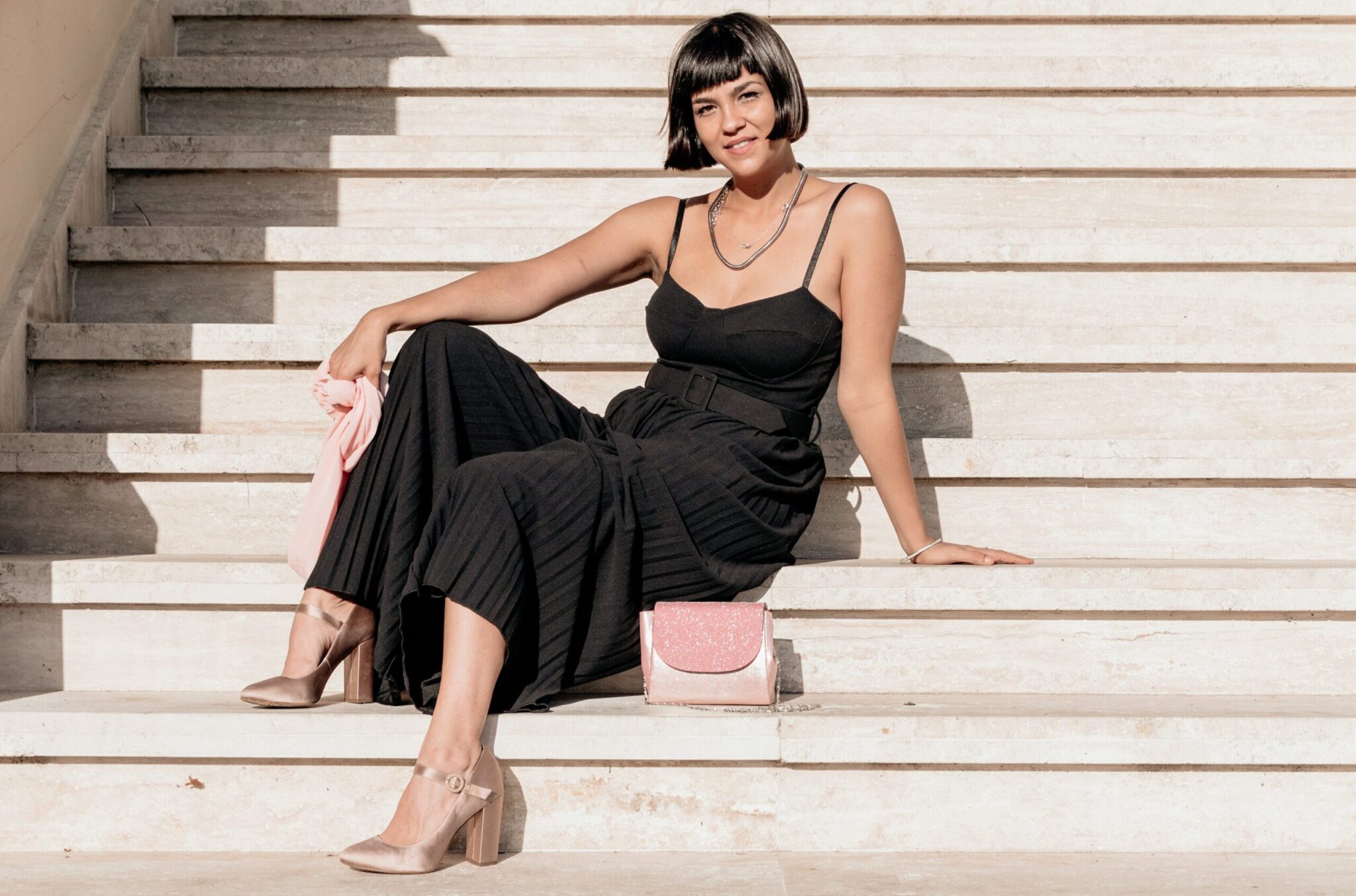 Με στόχο να αναδείξουμε τη γραμμή μιας αέρινης ολόσωμης φόρμας με φαρδιά μπατζάκια, συνδυάζουμε με μίνιμαλ αξεσουάρ και ψηλοτάκουνα πέδιλα με λουράκια, δημιουργώντας την αίσθηση μιας ψηλόλιγνης σιλουέτας. Αν επιθυμούμε να δείχνουμε ακόμη πιο κομψές, το μαύρο, όσο παράδοξο κι αν ακούγεται, θα μας βγάλει τελικά ασπροπρόσωπες.