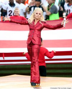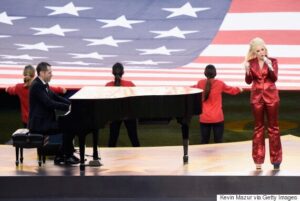 Πριν εμφανιστεί η Beyonce και με τις μοναδικές της χορευτικές φιγούρες, η τραγουδίστρια του «Poker Face» άφησε τους πάντες με το στόμα ανοιχτό πριν αρχίσει το σημαντικότερο παιχνίδι του αμερικάνικου αθλητισμού καθώς ερμήνευσε στη σκηνή το «Star Spangled Banner».