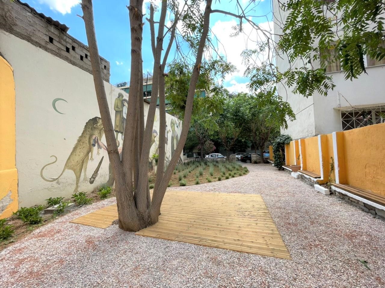 Επιπλέον, διατηρήθηκαν και ανανεώθηκαν κάποια στοιχεία που υπήρχαν στο χώρο από παρέμβαση που είχε γίνει στο παρελθόν από την ομάδα των Atenistas, όπως η εντυπωσιακή τοιχογραφία.