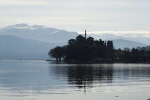 Είναι πολύ πρωί, εκεί στα τέλη Μαρτίου. Το άνετο και ζεστό δωμάτιο του ξενοδοχείου, έχει θέα στο κεντρικό δρόμο της πόλης, τη Δωδώνης. Παρεμβάλλονται τα μαυρισμένα από την υγρασία κλαδιά των αιωνόβιων πλατανιών του κήπου. Από το γυάλινο ασανσέρ του ξενοδοχείου, διακρίνεται η λίμνη. Η Παμβώτιδα ή πιο απλά της κυρά Φροσύνης, γνωστή και ως λίμνη των Ιωαννίνων, οι ντόπιοι θα αναφερθούν σε αυτή μόνο με μία λέξη. Η λίμνη. Τρείς πηγές, εκείνες της Ντραμπάντοβας,του Σεντενίκου και της Κρύας, φροντίζουν για αυτό το αποτέλεσμα και την καθιστούν ζωντανό κομμάτι της χλωρίδας αλλά και της πανίδας της περιοχής. Το Μιτσικέλι, το βουνό που επιτηρεί την λίμνη προσδίδει ακόμη μεγαλύτερο κύρος με την επιβλητικότητά του και θυμίζει με τον τρόπο του, τη δύναμη της φύσης.
