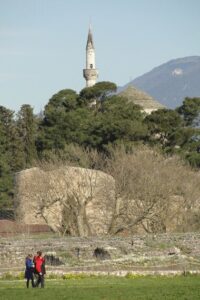 Το περπάτημα, είναι μία ξεχωριστή εμπειρία που σας προτείνω να την ζήσετε. Τα στενά του δρομάκια, τα πανέμορφα κτίρια, οι όμορφες και ολάνθιστες ανοιξιάτικες αυλές θα σας εντυπωσιάσουν. Το τζαμί του Ασλάν Πασά βρίσκεται στη βόρεια ακρόπολη και χτίστηκε το 1618 από τον ομώνυμο Πασά σε ανάμνηση της συντριβής της επανάστασης του Διονυσίου Φιλόσοφου. Δεσπόζει στο ομορφότερο ίσως σημείο της πόλης με θέα προς τη λίμνη, το νησί και την ίδια την πόλη. Στη θέση που καταλαμβάνει σήμερα το τζαμί, ήταν ο ναός του Αγ. Ιωάννου του προδρόμου που καταστράφηκε το 1611, και τώρα λειτουργεί ως δημοτικό μουσείο. Δεξιά και αριστερά, καθώς αρχίζει ο ανηφορικός δρόμος, συναντούμε πολλά κτίσματα της τουρκοκρατίας. Στη δεξιά πλευρά, αυτού του πλακόστρωτου, βρίσκονται τα τούρκικα λουτρά που είναι χτισμένα με ιδιόμορφη αρχιτεκτονική και περιελάμβαναν αποδυτήρια, χώρους λουτρών, και χώρο ξεκούρασης. Στην αριστερή πλευρά, βρίσκεται ένα διόροφο κτίριο, το οποίο αποτέλεσε το στρατόπεδο του Αλή πασά, όπου εκπαιδεύτηκαν και οι πρωταγωνιστές του ’21, όπως ο Οδ. Ανδρούτσος, ο Καραισκάκης, ο Μ. Μπότσαρης. Αφήνουμε τη βόρεια ακρόπολη και κινούμαστε προς το εσωτερικό φρούριο, το Ιτς Καλέ. Στην είσοδο του χώρου βρίσκεται ο πλάτανος όπου μαρτύρησε ο αρχηγός της κλεφτουριάς Κατσαντώνης, το 1807.