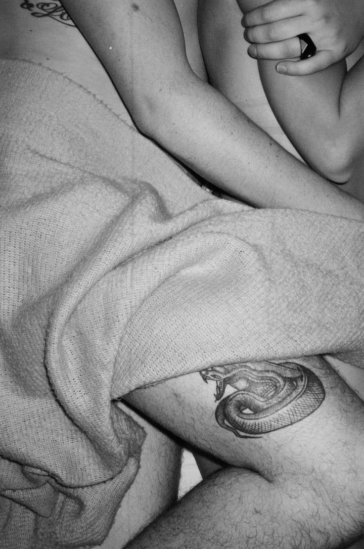 Στις φωτογραφίες για το «Lovers», το ζευγάρι ξάπλωσε μαζί και η γυναίκα «τυλίχτηκε» στην αγκαλιά του συντρόφου της.