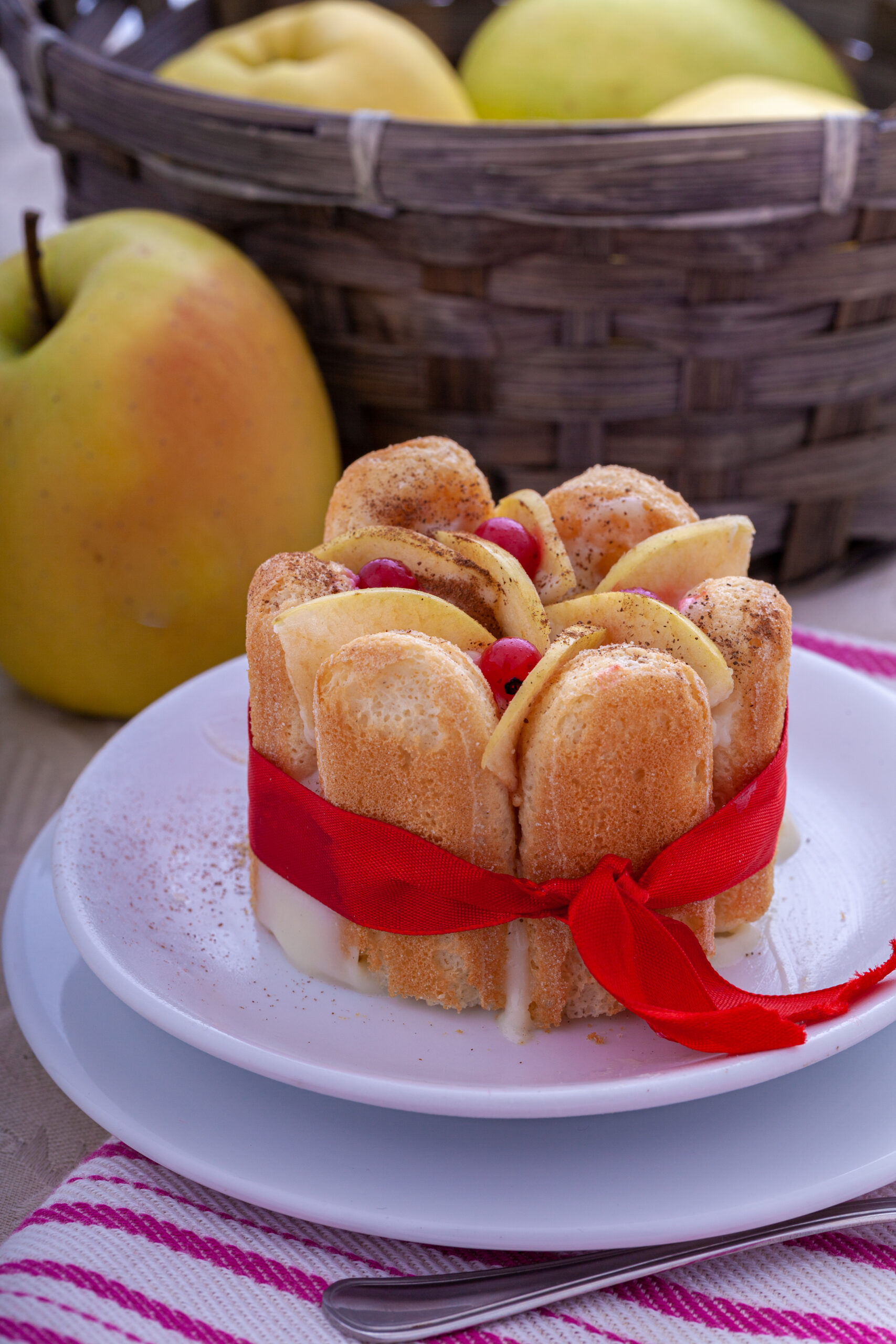 Σερβίρουμε τις σαρλότ σε πιάτα, ζεστές από τον φούρνο, και τις περιχύνουμε με τη σάλτσα καρδάμωμου.