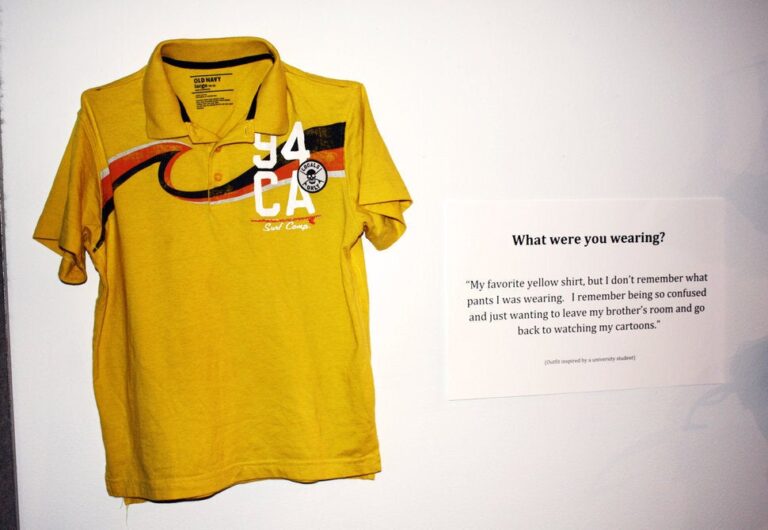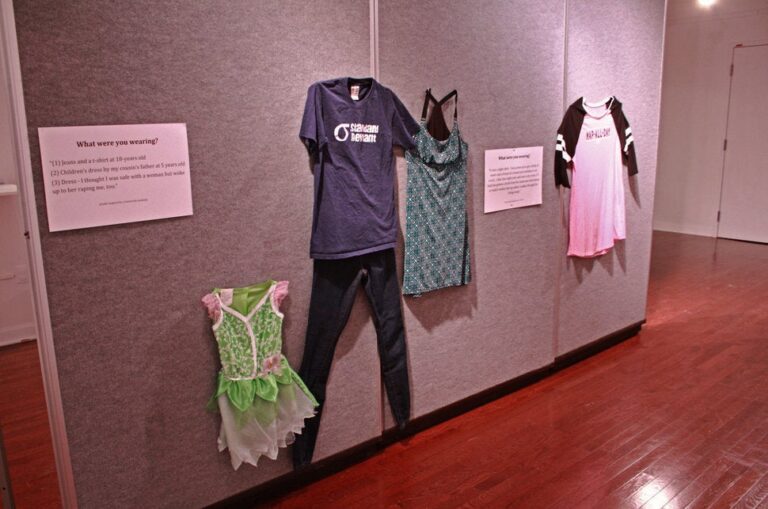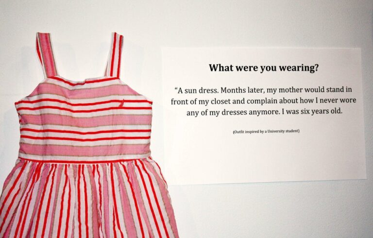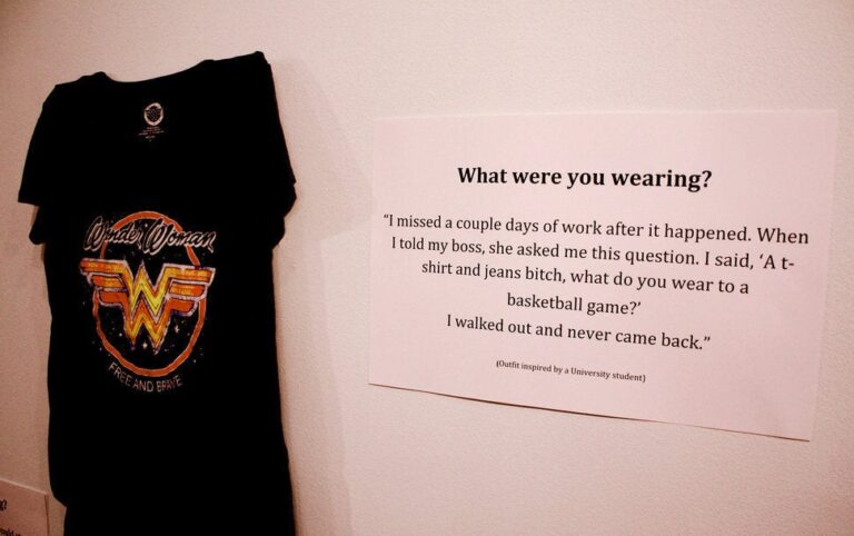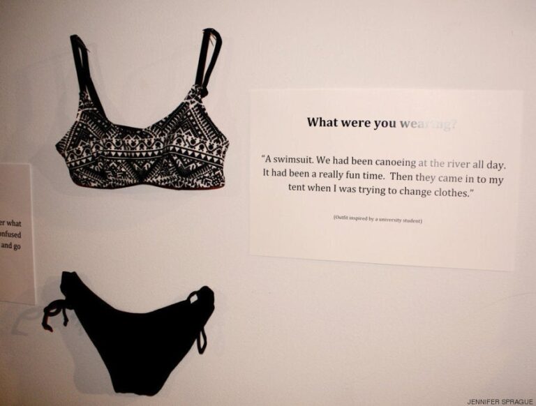 Αυτή τη περίοδο, στο Πανεπιστήμιο του Kansas στην Αμερική, διεξάγεται μια πολύ ενδιαφέρουσα έκθεση που στοχεύει στην κατάρριψη αυτού του μύθου. Η έκθεση έχει τον τίτλο «What Were You Wearing?» (Τι Φορούσες;), αποτελείται 18 ιστορίες σεξουαλικής βίας και αναπαραστάσεις των ρούχων που φορούσε το κάθε θύμα τη στιγμή που του επιτέθηκαν. Οι εν λόγω εμφανίσεις περιλαμβάνουν ένα μαγιό μπικίνι, μια (τυπικά) αγορίστικη κίτρινη μπλούζα, ένα σέξι κόκκινο φόρεμα και ένα τζιν παντελόνι με ένα T-shirt.