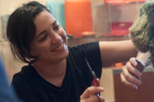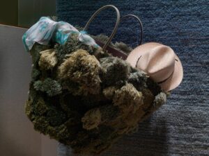 Yφαίνει τις ύλες της δημιουργώντας, με ένα ειδικό πιστόλι, υφαντές φούντες πάνω σε μεγάλες υφασμένες επιφάνειες, προσφέροντας τελικά αυτό το απόλυτο έργο τέχνης. Εναρμονισμένη με το καθάριο μπλε της Ελλάδας, μεταφέρει της δική της Ιθάκη στη βιτρίνα του διεθνούς οίκου. Ένας παράδεισος ελληνικού νησιού. Χωρίς αμφιβολία, ένας ονειρικός προορισμός…