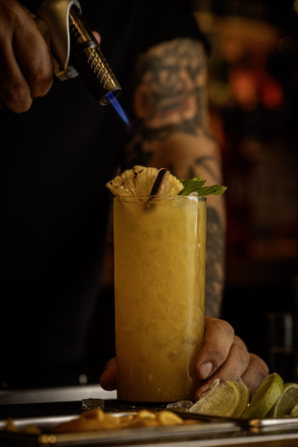 Οσο πλησιάζει η νύχτα, η ενέργεια αλλάζει και η τεράστια ξύλινη μπάρα παίρνει τα ηνία. Τα signature cocktails και aperitivo εντυπωσιάζουν με φρέσκες γεύσεις και προσεγμένη παρουσίαση. Από τη Clear Margarita και το Porn Star Spritz με βανίλια και passion fruit μέχρι τα all-time classics, όλα σερβίρονται με συνέπεια και φροντίδα.