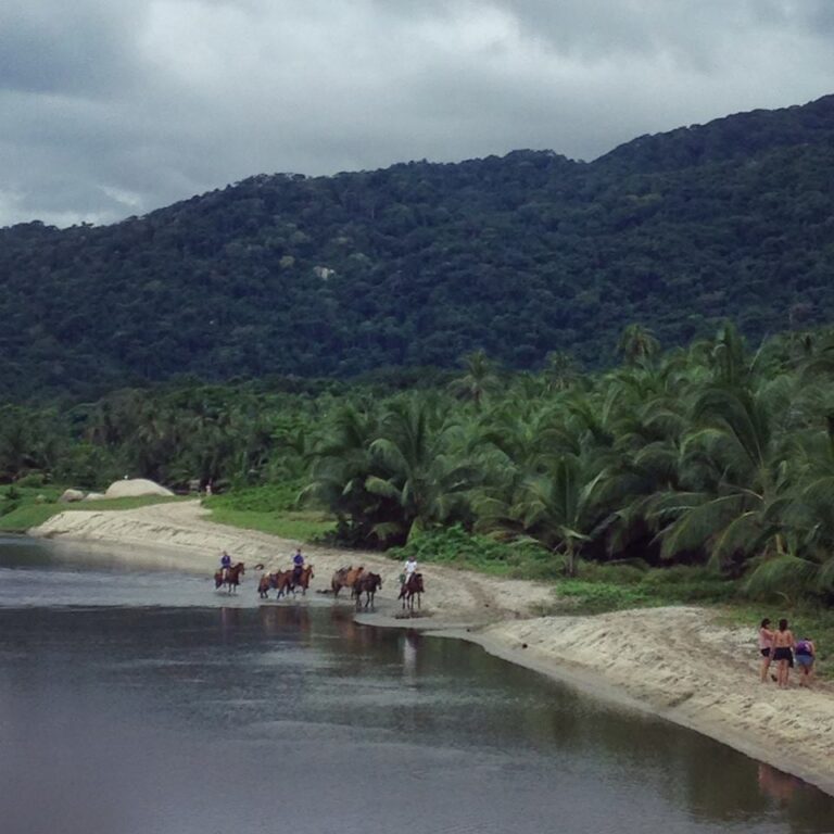 Φτάσαμε μετά από μισή ώρα στο δρόμο και ξεκινήσαμε όλοι να φοράμε τα αντιηλιακά και τα αντικουνουπικά μας. Ξεκίνησε το trekking που θα διαρκούσε δυο ώρες μέχρι την παραλία και μετά άλλες δύο στην επιστροφή. Η διαδρομή ήταν όμορφη. Ο οδηγός φρόντιζε να βαδίζει τελευταίος για να προσέξει τα παραστρατήματά μας, βέβαια, ενώ στην αρχή ξεκινήσαμε σαν μια ομάδα, στη συνέχεια χωριστήκαμε ακολουθώντας ο καθένας το ρυθμό του. Είχα στο νου μου να είμαι πάντα κοντά σε κόσμο και το κατάφερνα αρκετά καλά. Το άγχος μου έφυγε σιγά σιγά και κατάφερα να ηρεμήσω και να απολαύσω τη διαδρομή. Κάποια στιγμή βρεθήκαμε σε μια παραλία όπου περνούσαν από απέναντι πανέμορφα άλογα. Στην παραλία εκείνη υπήρχε μια ταμπέλα που ενημέρωνε τους επίδοξους κατασκηνωτές να μη βουτήξουν στα νερά γιατί είναι ιδιαίτερα ορμητικά και έχουν χαθεί πάνω από εκατό τουρίστες τα τελευταία χρόνια. Κάπου εκεί είχαμε ήδη διανύσει μια ώρα περπάτημα και η διαδρομή έφτανε στο πιο δύσκολο σημείο. Μετά από ένα δάσος με φοίνικες μπήκαμε βαθιά μέσα στη ζούγκλα. Στη ζούγκλα αυτή ζουν εδώ και 2000 χρόνια ολιγομελείς φυλές γηγενών της Κολομβίας που θεωρούν χρέος τους να προστατεύσουν τη γη των προγόνων τους. Ήλπιζα να τους συναντήσω.