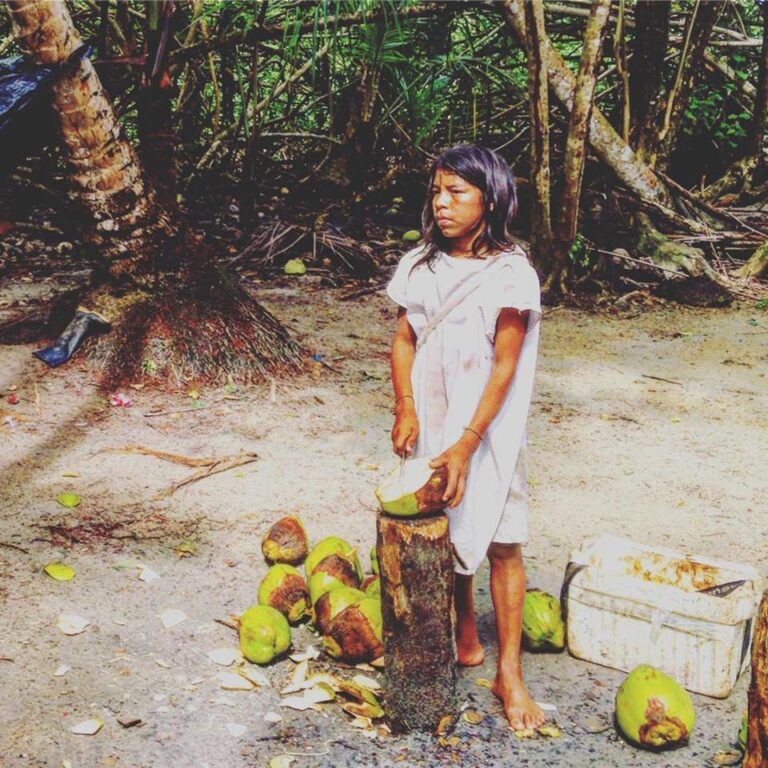 Εκεί λοιπόν που περπατούσα στα λασπωμένα μονοπάτια του πάρκου Tayrona κάτω από τεράστια δέντρα που κρύβουν τον ήλιο, την είδα : μια σκηνή σα να βγήκε από το national geographic, ένα κορίτσι απροσδιορίστου ηλικίας της ιθαγενούς φυλής Kogi να κόβει αδιάφορα καρύδες και να με κοιτάζει εχθρικά χωρίς να λέει λέξη. Οι Kogi ζουν στη Sierra Nevada σε πλήρη αρμονία με τη φύση, πλέκουν τσάντες από γκρι μαλλί και τις φορούν πάντα με λευκά ενδύματα. Είναι περήφανοι που ζουν με πλήρη σεβασμό στη μάνα γη και δε θέλουν μεγάλη επαφή με ανθρώπους που εκμεταλλεύονται τη γη προς όφελός τους, σε βαθμό που να την καταστρέφουν.