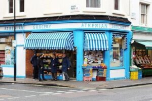 Ταυτόχρονα όμως, η «παλιά Ελλάδα» διατηρεί τον χαρακτήρα της στην πόλη, με χαρακτηριστικό σημείο αναφοράς την οδό Moscow, που βρίσκεται λίγα λεπτά από το Hyde Park, στην καρδιά του Bayswater. Ένα από τα πρώτα καταστήματα που συναντάει κάποιος καθώς προσεγγίζει την οδό από την Queensway Street είναι το εστιατόριο «Santorini». Σερβίροντας παραδοσιακά ελληνικά πιάτα, μας μεταφέρει μερικές δεκαετίες πίσω στο χρόνο, με τον κυρίως χώρο του να χαρακτηρίζεται από ένα ντεκόρ αισθητικής του ’70. Λίγο πιο κάτω, το «Athenian Grocery» είναι ένα μανάβικο και μίνι-μάρκετ που προσφέρει παραδοσιακά προϊόντα, από φρέσκα λαχανικά μέχρι κονσέρβες με σαρμαδάκια και ελληνικά σαπούνια. Οι επισκέπτες του αποτελούν κατά κύριο λόγο Έλληνες μετανάστες πρώτης γενιάς – άνω των 60 – αλλά και ξένους, που ελκύονται από τον γραφικό χαρακτήρας του καταστήματος.