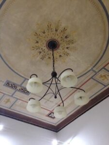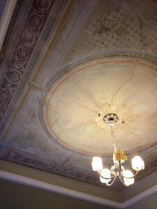 Το 1890 ήταν κατοικία ενός ναυάρχου του Πολεμικού Ναυτικού και έμεινε εγκαταλελειμένο για πολλές δεκαετίες. Αρχές του 2000 το πήρε ένας καθηγητής Πανεπιστημίου και το αναπαλαίωσε. Τυχαία ανακάλυψε ότι υπήρχαν αυτές οι υπέροχες οροφογραφίες και τις συντήρησε. Μετά την αναπαλαίωση το χρησιμοποιούσαν για στούντιο γυρισμάτων ταινιών, κάποια περίοδο λειτούργησε και ως εστιατόριο και μετά πάλι εγκαταλείφθηκε για καμιά πενταετία και στη συνέχεια … έπεσε στα χεράκια μας. Στις οροφές για παράδειγμα δεν χρειάστηκε να επέμβουμε, αλλά ο ίδιος ο χώρος είχε πολλά προβλήματα, τα οποία μέχρι και σήμερα τα δουλεύουμε.