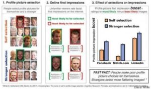 Μια νέα έρευνα από το University of New South Wales της Αυστραλίας προσπάθησε να αναλύσει η διαδικασία με την οποία οι άνθρωποι επιλέγουν τις φωτογραφίες προφίλ τους. Η έρευνα, η οποία δημοσιεύθηκε στο περιοδικό Cognitive Research: Principles and Implications, έχει τίτλο «Choosing face: The curse of self in profile image selection» και έδειξε πως οι φωτογραφίες που επέλεξαν οι ίδιοι οι χρήστες είχαν λιγότερη απήχηση στους άλλους σε σχέση με φωτογραφίες που επέλεξαν γι’ αυτούς ξένοι άνθρωποι.