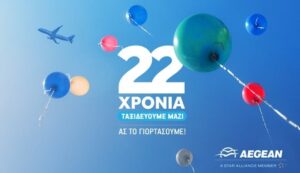Η AEGEAN γιορτάζει 22 χρόνια επιτυχημένης λειτουργίας και εύχεται σε όλους ακόμα περισσότερα κοινά ταξίδια και τα επόμενα 22!