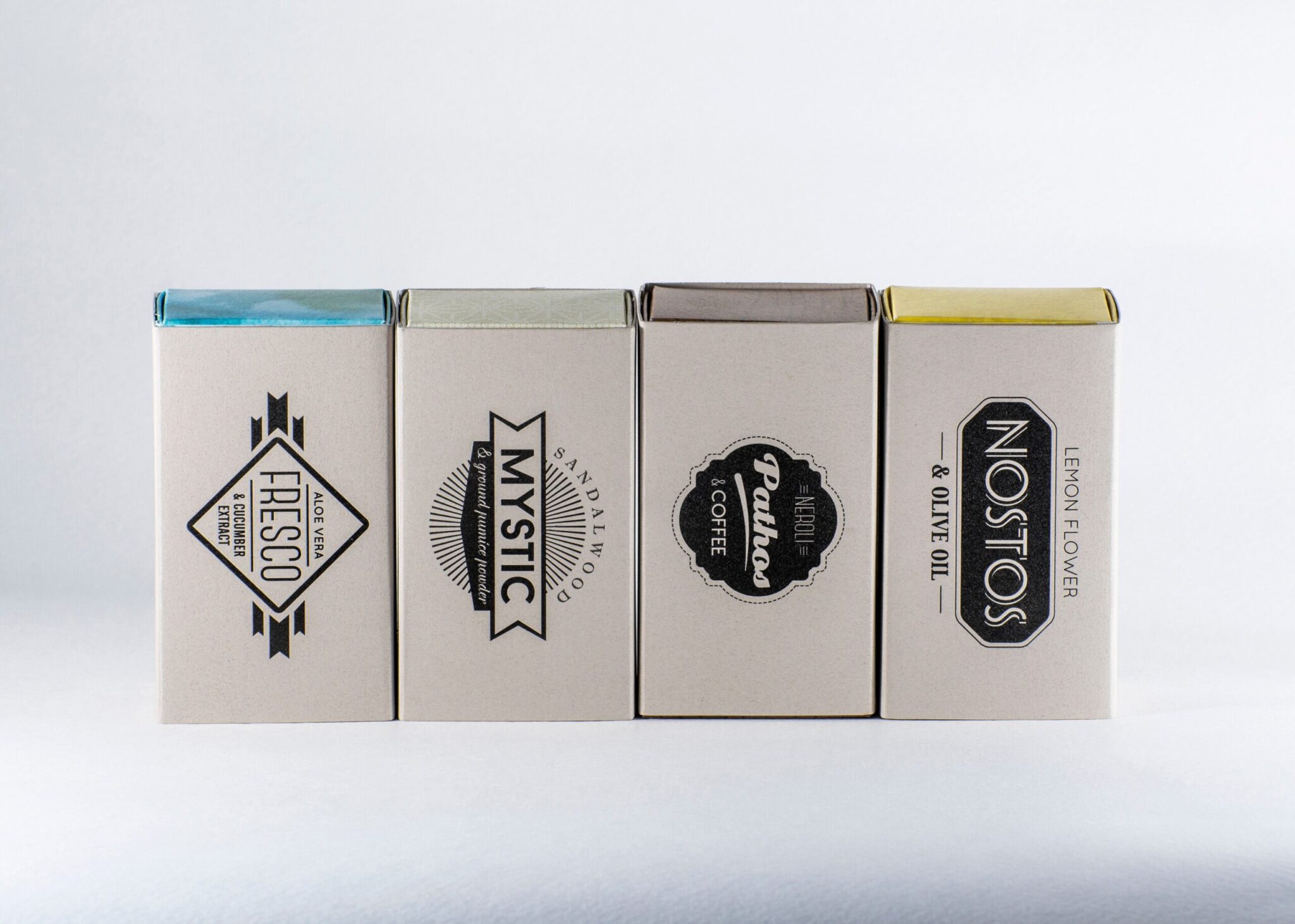 Οι συσκευασίες έχουν σχεδιαστεί σε συνεργασία με την Μαργαρίτα Κονδυλάκη του Μotive Creative. Στόχος ήταν να έχουμε λιτές γραμμές και έντονη σχέση της συσκευασίας με το περιεχόμενο προϊόν και νομίζω τα έχουμε καταφέρει.