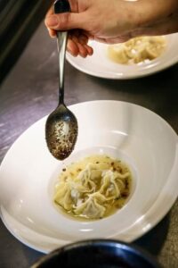 «Τίποτα δεν είναι τυχαίο,» μου λέει όταν τον ρωτάω πώς κατέληξε να γίνει σεφ. Μια μέρα, αποφάσισε πως δεν ήθελε πλέον να δουλεύει σε διοικητικές θέσεις της Ε.Ε. και έφυγε για τη Λυών, όπου δούλεψε σε βιοδυναμικές φάρμες με στόχο να μάθει και να κάνει δικές του βιοδυναμικές καλλιέργειες στην Ελλάδα. Καθώς όμως αυτό το όνειρο τελικά δεν «του βγήκε», αποφάσισε να ιδρύσει μια εταιρεία εισαγωγής ελληνικών προϊόντων στη Γαλλία. Και αυτό ήταν που τον έφερε στις Βρυξέλλες, όπου μια γευσιγνωσία των προϊόντων του πήγε τόσο καλά που τελικά άνοιξε ένα μαγαζί εκεί για να τα πουλάει. Αλλά αυτό δεν ήταν αρκετό για εκείνον. «Ήθελα ο κόσμος να μπορεί να τσιμπολογάει και κάτι. Έτσι άρχισαν όλα,» θυμάται.