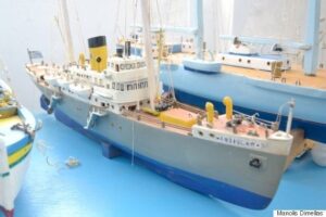 Ανάμεσα στα πλοία-αντίγραφα που έφτιαξε ο Ντίνος Καραξής είναι το θρυλικό επιβατηγό ΑΝΔΡΟΣ, του εφοπλιστή Νικολάου Διαπούλη, αξέχαστο για κείνους που έφυγαν μετανάστες από το νησί τη δεκαετία του 1950.
