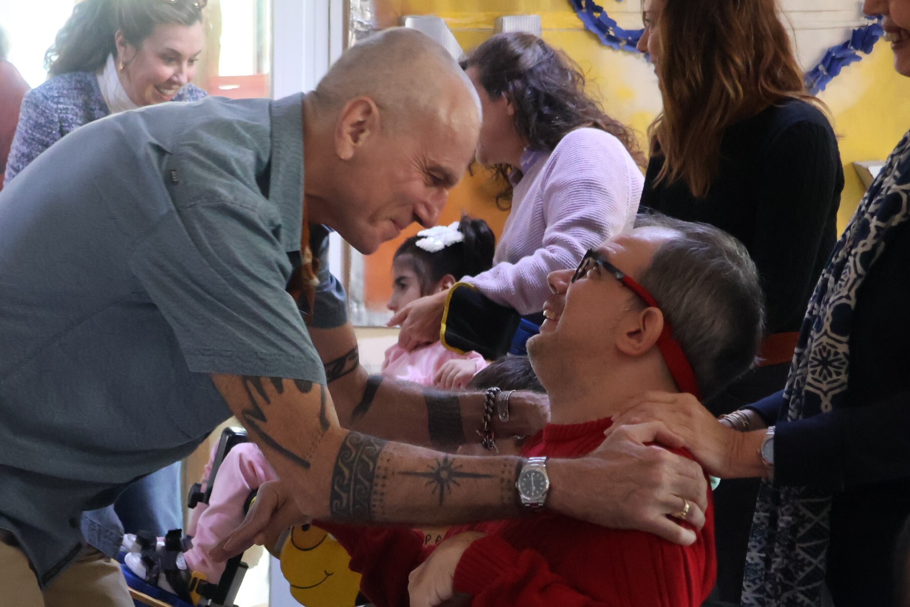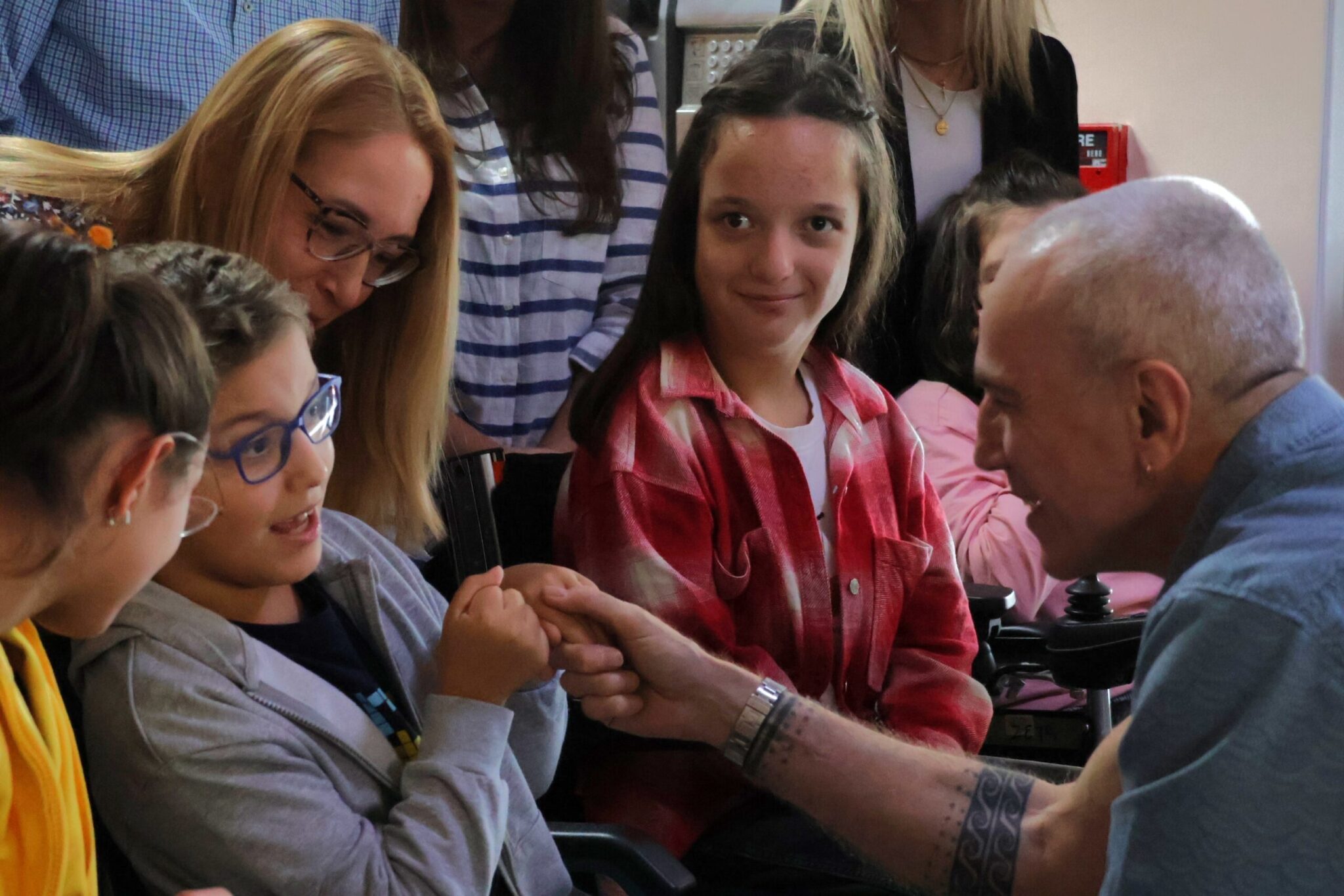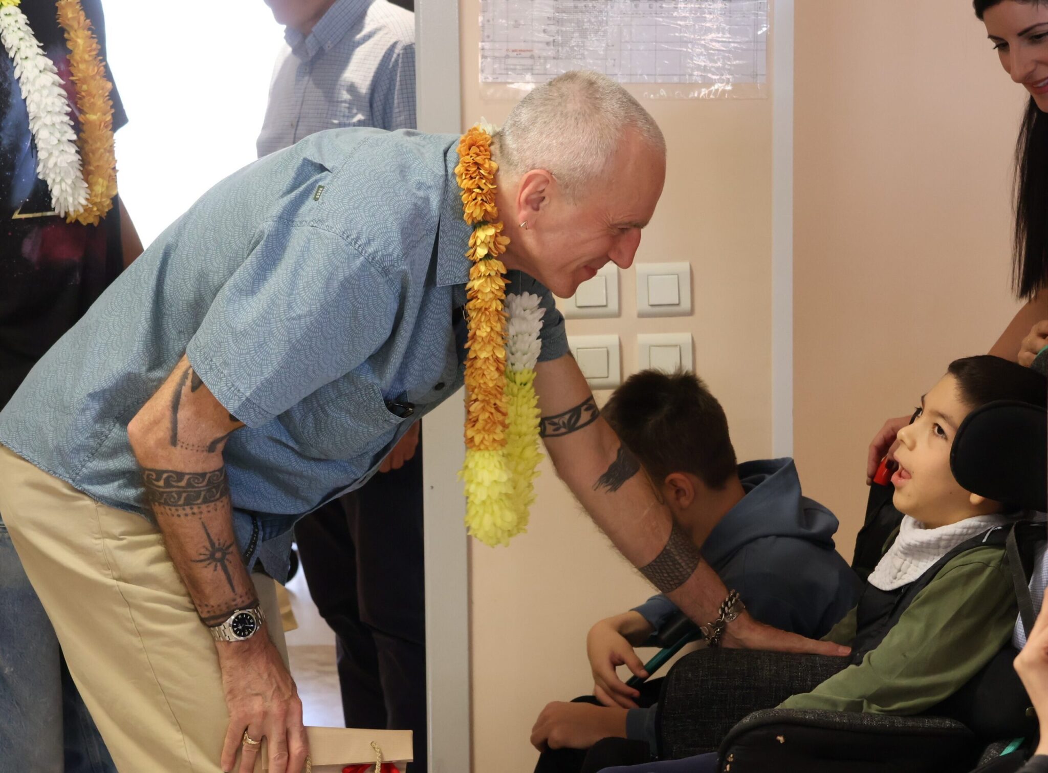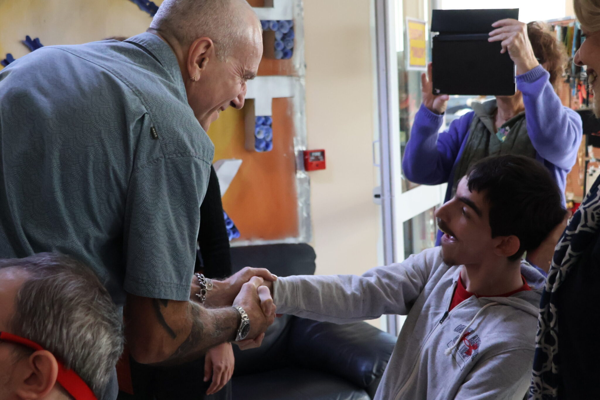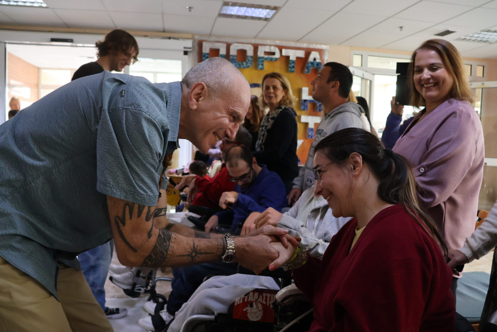 Τα παιδιά και οι άνθρωποι της Πόρτας Ανοιχτής τους υποδέχθηκαν με χαρά και τραγούδια,γεμίζοντας τον χώρο με γέλια, μουσική και χειροκροτήματα. Οι επισκέπτες παρακολούθησαν κινηματογραφικά, θεατρικά και χορωδιακά δρώμενα που είχαν ετοιμαστεί ειδικά για εκείνους και δεν έκρυψαν τη συγκίνησή τους. Για λίγο, οι ρόλοι αντιστράφηκαν: ο βραβευμένος με Όσκαρ ηθοποιός χειροκροτούσε αδιάκοπα τους συμμετέχοντες στις καλλιτεχνικές ομάδες της Πόρτας Ανοιχτής τους