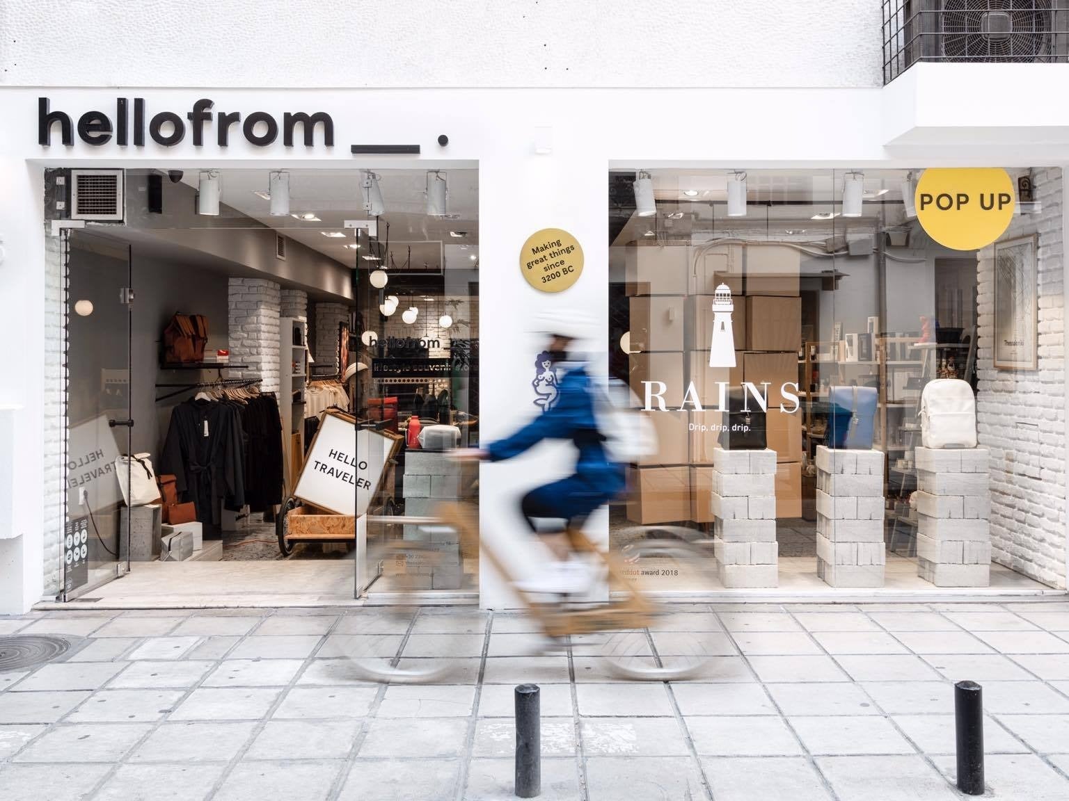 Ανάμεσα σε αυτά τα προϊόντα είναι και η RAINS. Μπαίνοντας στο hellofrom_, βλέπεις παντού τσάντες όλων των ειδών, καπέλα και jackets της δανέζικης εταιρείας. Και ο λόγος είναι ότι το Hello from_ δημιούργησε στο εσωτερικό του (και στο e-shop του) το πρώτο Pop-up store της RAINS στην Ελλάδα, συγκεντρώνοντας τη συλλογή της σε ένα spot και φέρνοντας χρώματα και σχέδια της εταιρείας που σίγουρα δεν είχαμε ξαναδεί, καθώς μέχρι πρότινος βρίσκαμε προϊόντα της αποσπασματικά σε διαφορετικά σημεία.