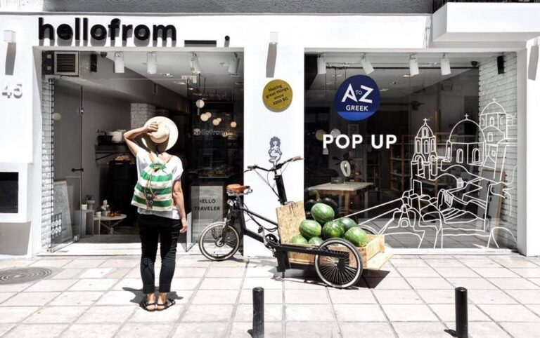 Το hellofrom_ δεν είναι άλλο ένα μαγαζί σαν όλα τα άλλα, είναι ένας retail χώρος “του μέλλοντος”, στον οποίο ενώνεται το physical με το digital δημιουργώντας το λεγόμενο “phygital” και προσφέροντας μια διαφορετική εμπειρία σε κάθε επισκέπτη. Κάθε τόσο στήνονται στο εσωτερικό καθηλωτικά installations με τα προϊόντα που έχουν δημιουργήσει σε συνέργεια με άλλες εταιρείες. Ανάμεσα σε αυτά ήταν και ένα τρίκυκλο ηλεκτρικό ποδήλατο, το οποίο είχαν φτιάξει σε συνεργασία με μία ελληνική εταιρεία και το είχαν γεμίσει με καρπούζια, μετουσιώνοντας όλο το ελληνικό καλοκαίρι σε ένα απρόσμενο installation που στήθηκε στο πεζοδρόμιο  της Προξένου Κορομηλά.
